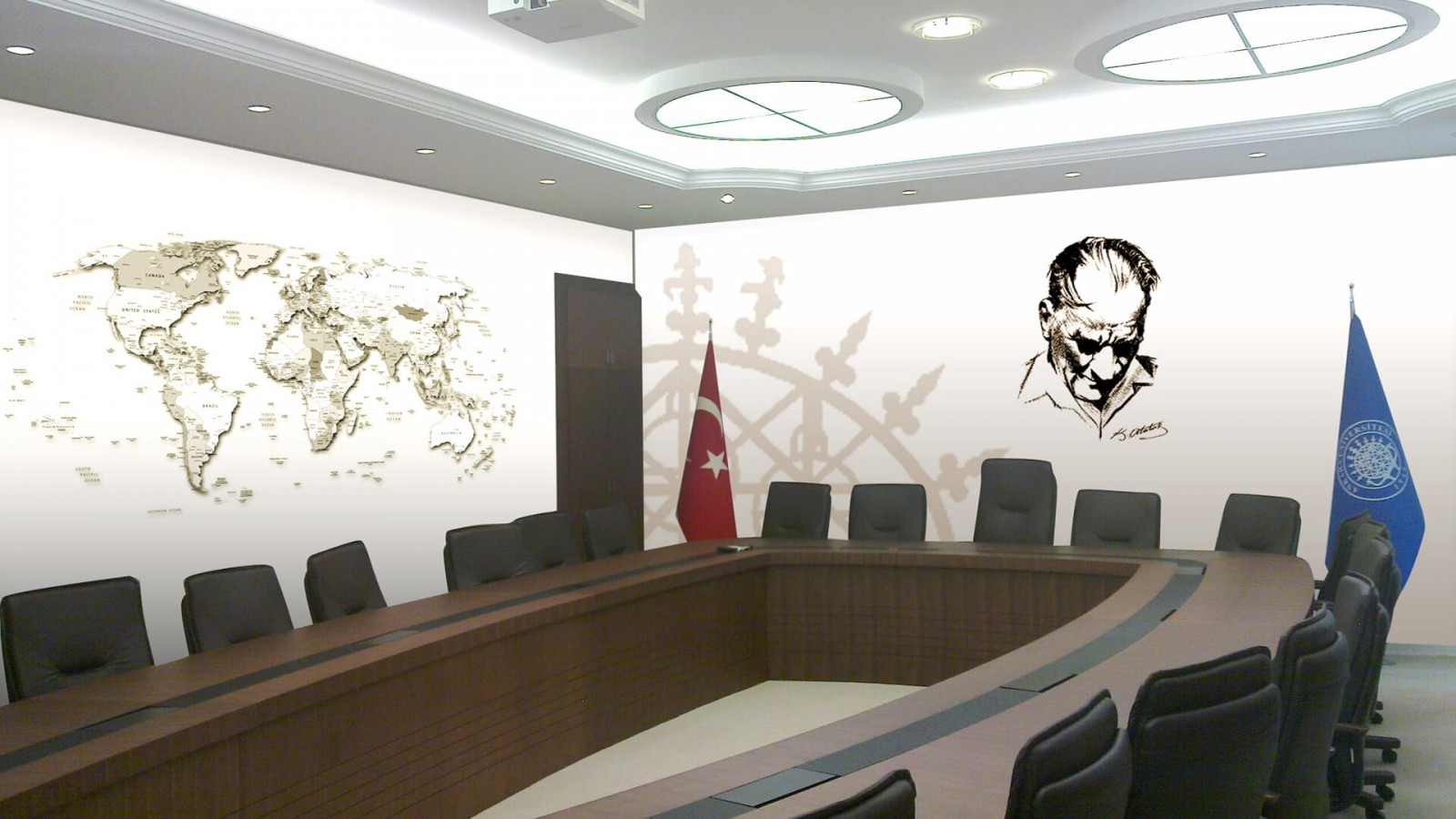 Atatürk ve Devlet büyüklerinin kompoze edildiği makam panosu, köşe ve anıt tasarımları.