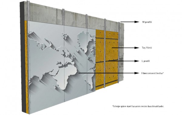 Modern yapılarda sıklıkla iç ve dış cephe kaplaması olarak çözüm sunan Fibercement Levhalar ihtiyaç duyulan alanlarda estetik taleplere de hizmet etmek üzere özel olarak tasarımlanarak mimari alanda müşteri odaklı çözümler sunmaktadır. İhtiyaca göre fugalı olarak da tasarlanabilen özel tasarımlı fibercement levhalar iç ve dış cephe malzemesi olarak istenilen ebat ve biçimde şekillendirilebilmekte, bununla birlikte sınırsız fotografik görsel uygulanabilme özelliği ile görsellik ve işlevselliğin bir arada sunulduğu bir ürün olma özelliği taşımaktadır.